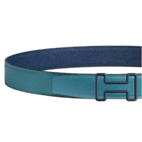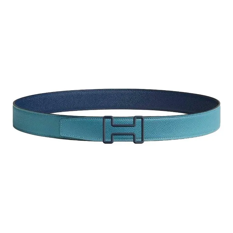 HERMES Телячья кожа Кожаные ремни Мужской Новый Джинсовый синий Темно-синий Ширина 3,2CM