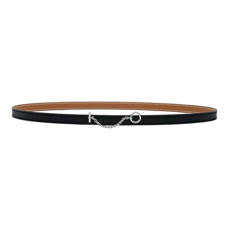 HERMES Телячья кожа Кожаные ремни Женские Черный Ширина 1,3 см