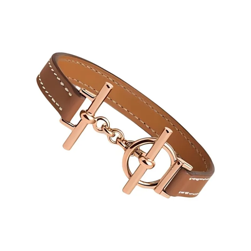 HERMES Телячья кожа Металл Покрытие Розовым золотом Браслеты Женские Коричневый