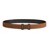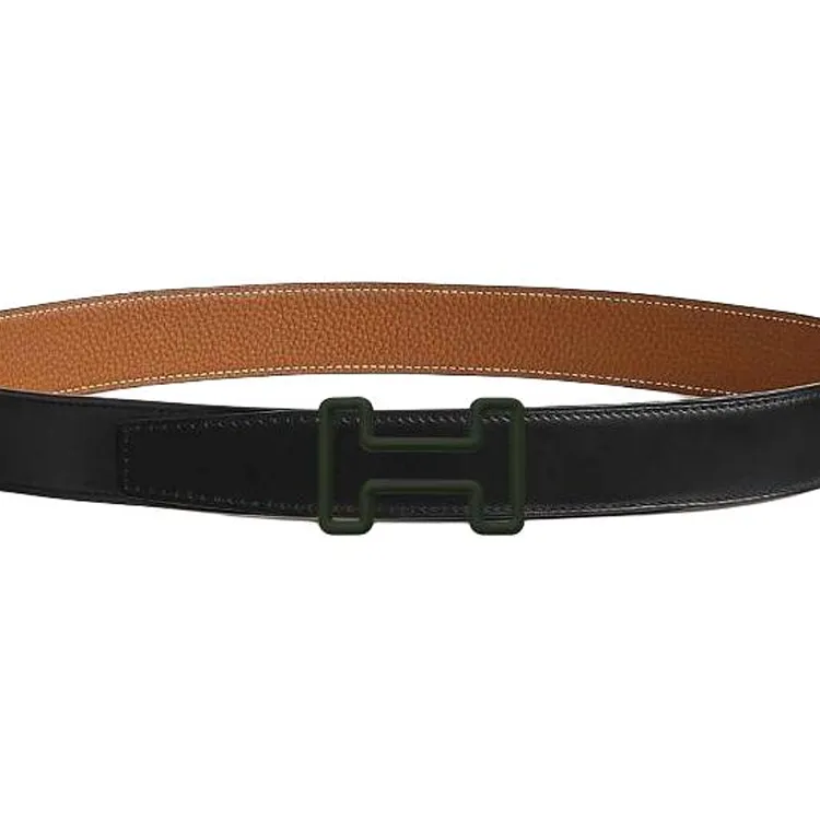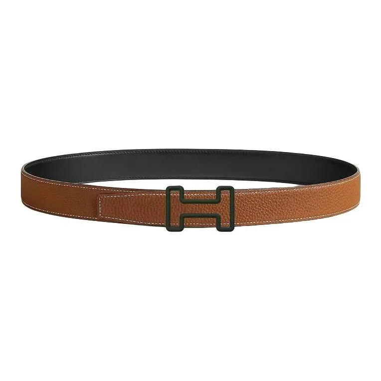 HERMES Телячья кожа Металл Нержавеющая сталь Резина Кожаные ремни Мужской Черный Коричневый Ширина 3,2 см