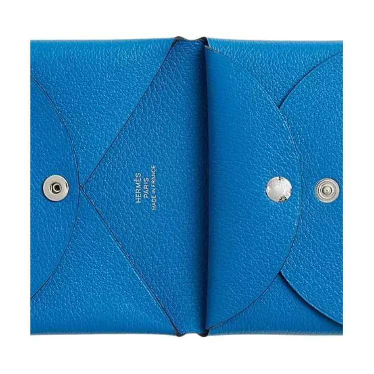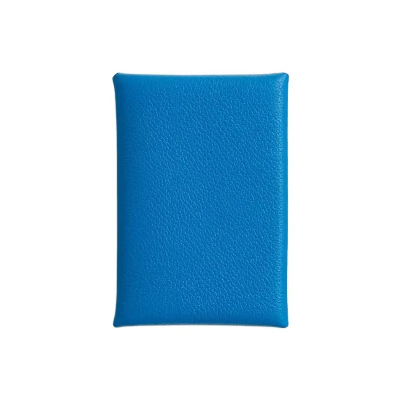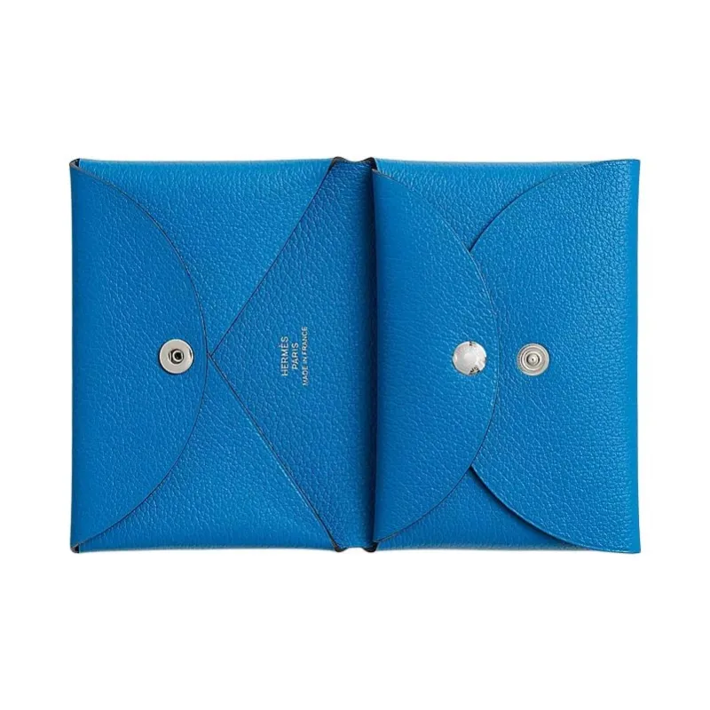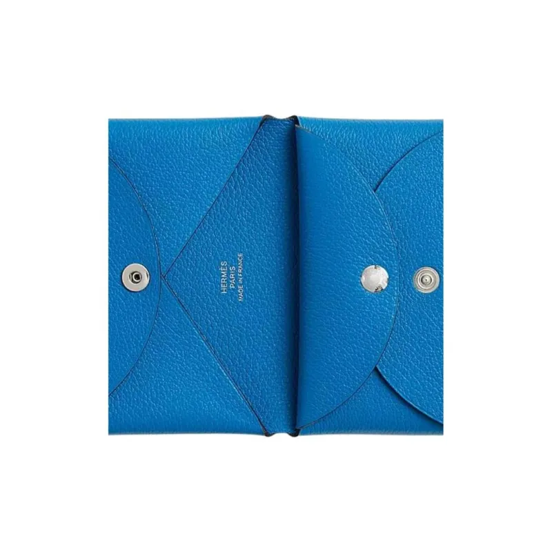 HERMES Calvi Duo Evercolor Телячья кожа Держатель для карт Унисекс B3 BLEU Занзибар Танзанийский Синий
