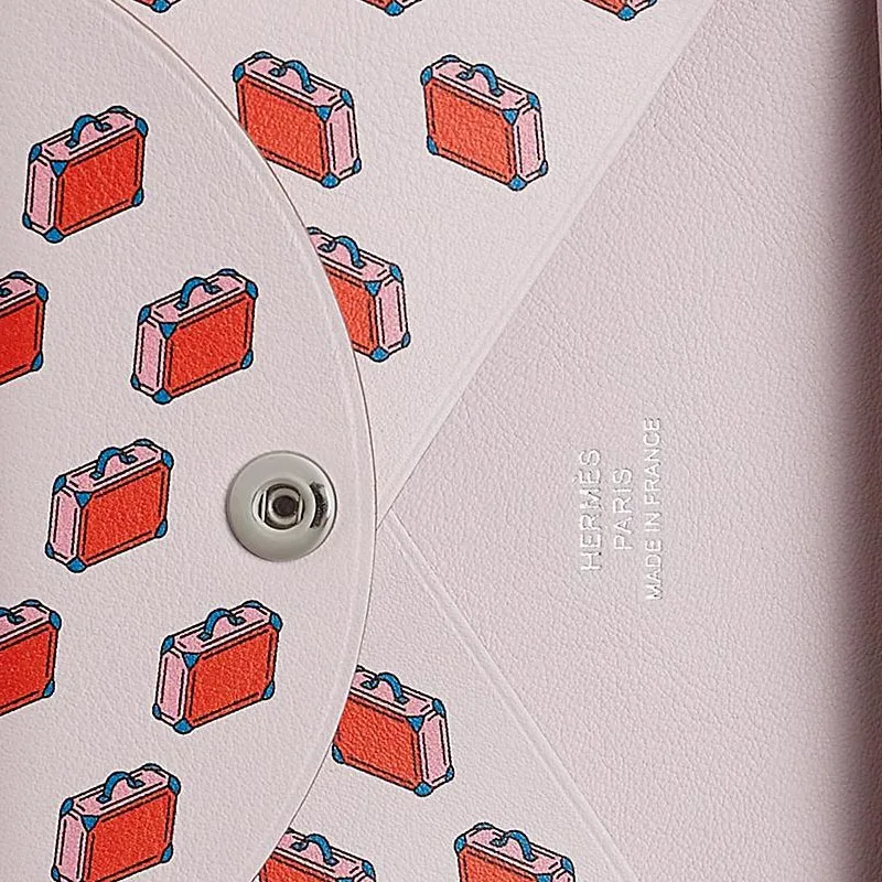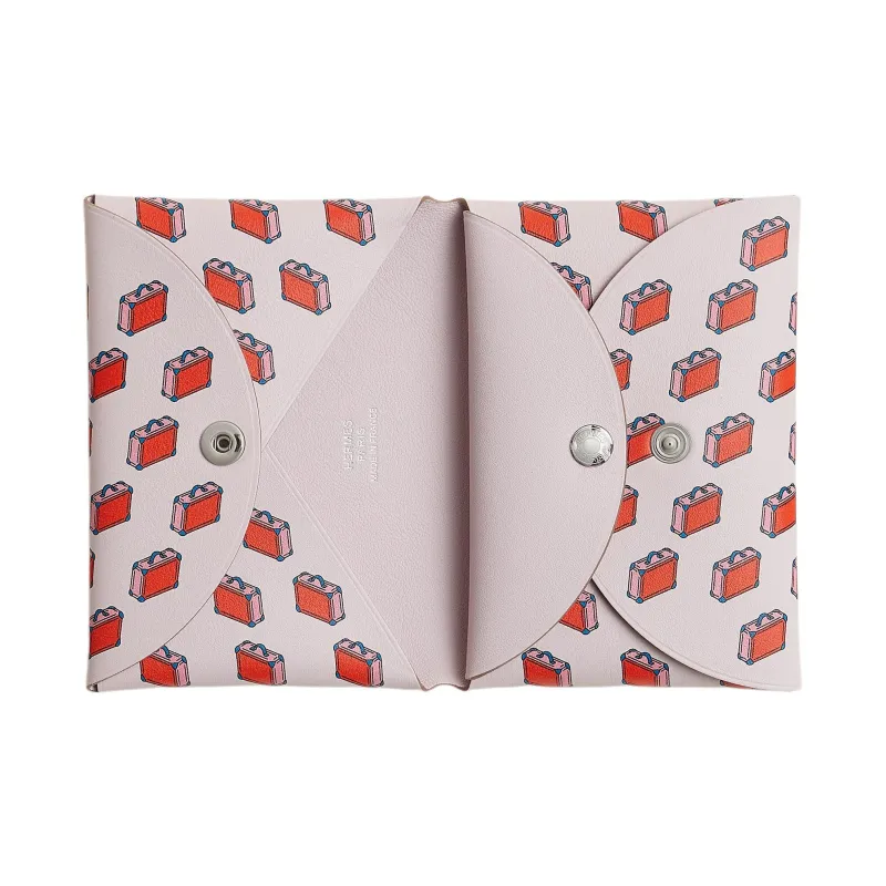 HERMES Calvi Duo Swift Телячья кожа Держатель для карт Женский 09 Бледно-розовый Фиолетовый Фантастический фиолетовый