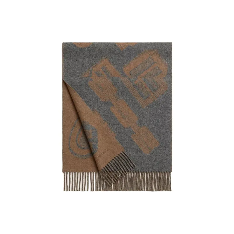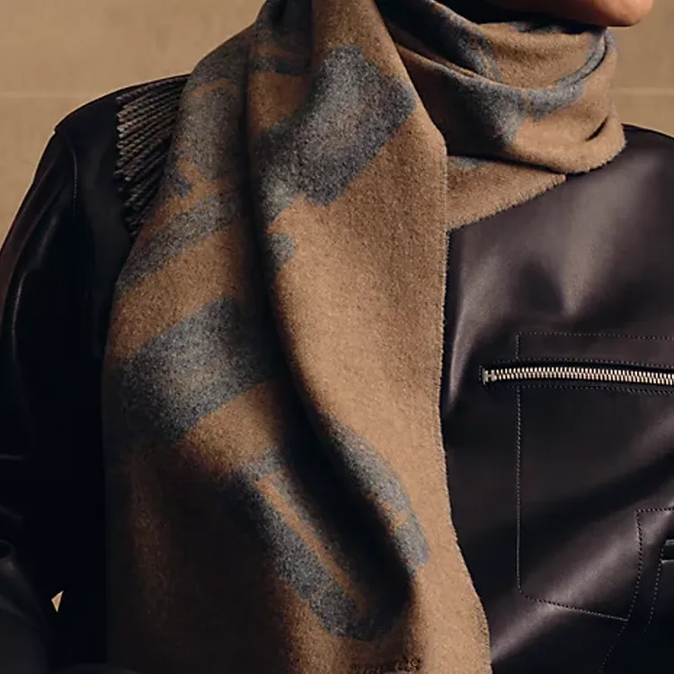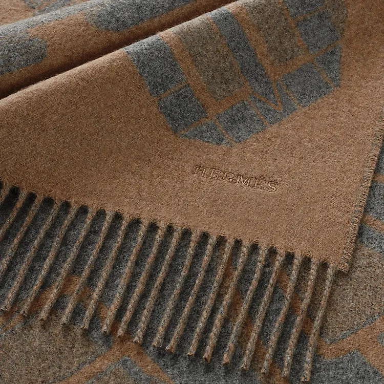 HERMES Кашемир Вязаные Шарфы Мужской Светлый Умбра