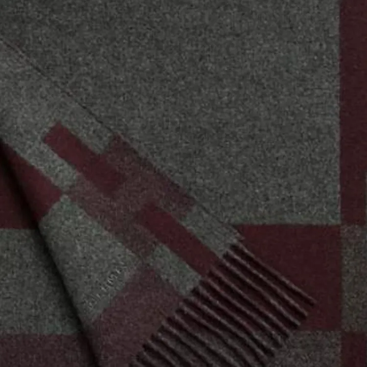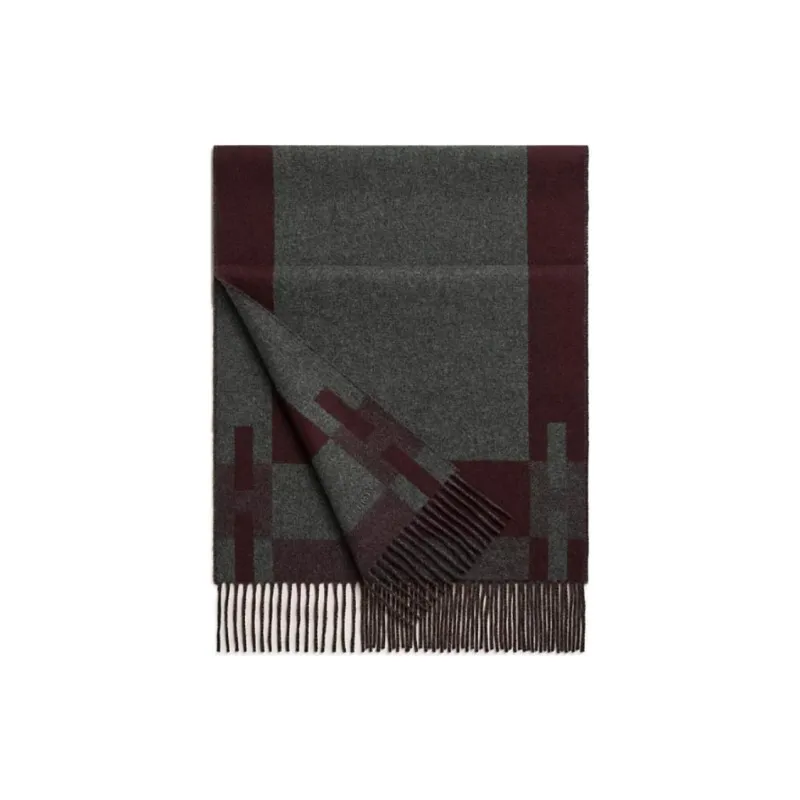 HERMES Кашемир Вязаные Шарфы Мужской Средний Серый Гранатовый Красный