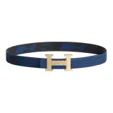 HERMES Двойной Sided Нейлон Кожаные ремни Черный/Индиго Мужской