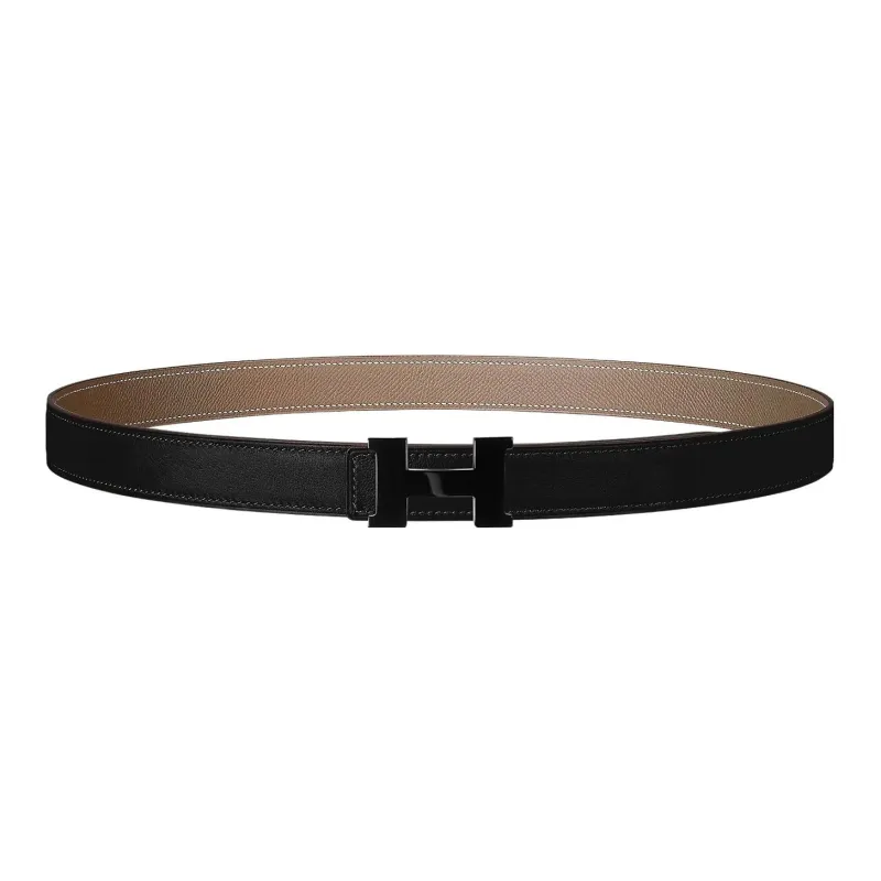 HERMES Constance Epsom Телячья кожа Двойной сторонний кожаный ремни Мужской Черный 2,4CM