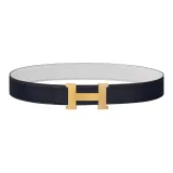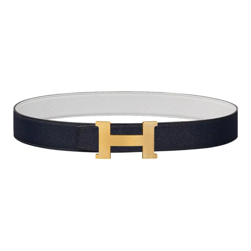 HERMES Ремень из коровьей кожи мужской индиговый белый ширина 3,8 см
