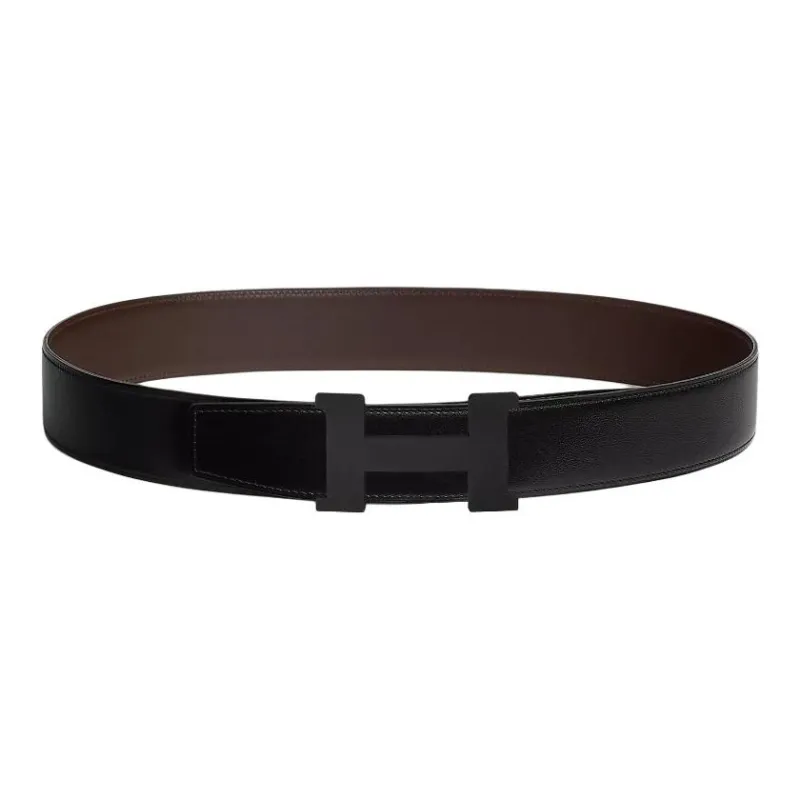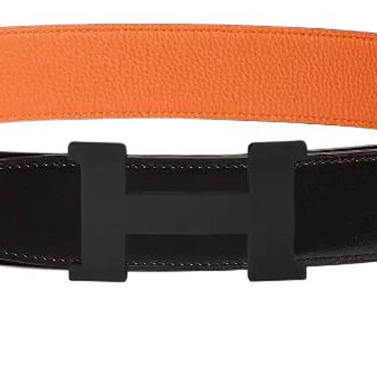HERMES Ремни из коровьей кожи Мужской Черный Оранжевый Ширина 3,8 см