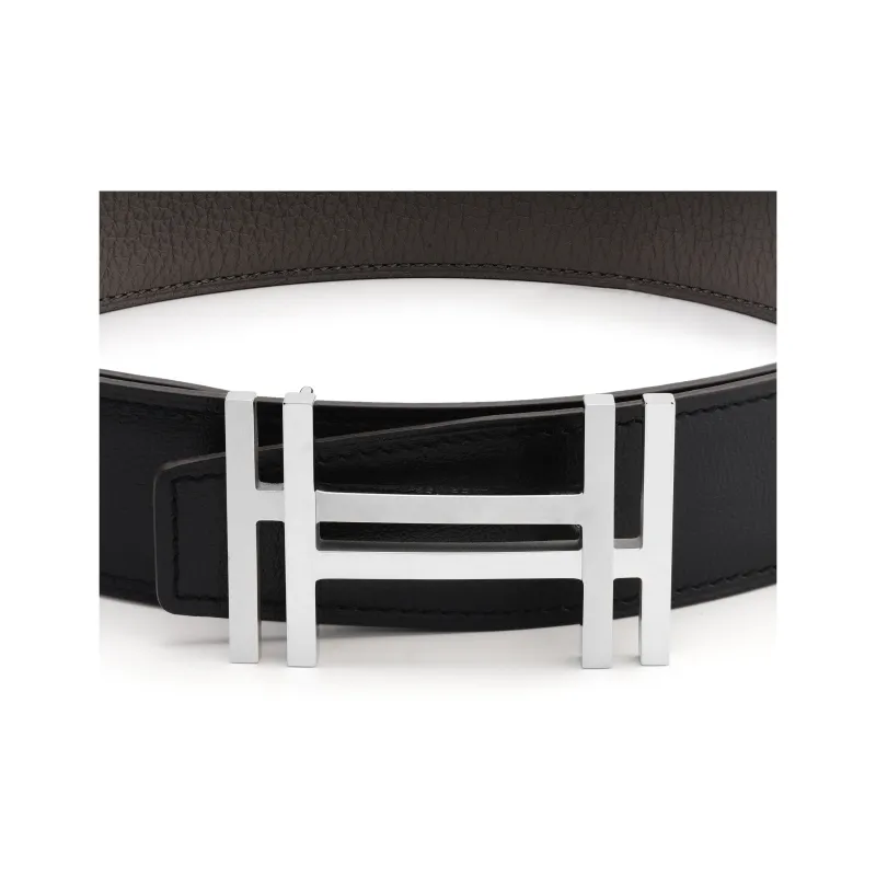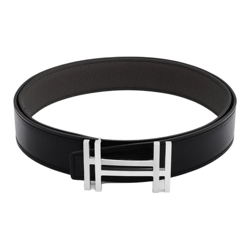 HERMES Ремни из коровьей кожи Мужской Черный Оловянно-серый 3,2 см