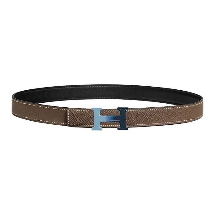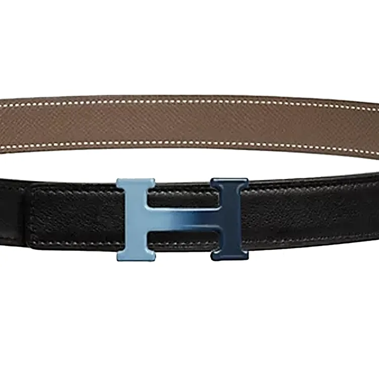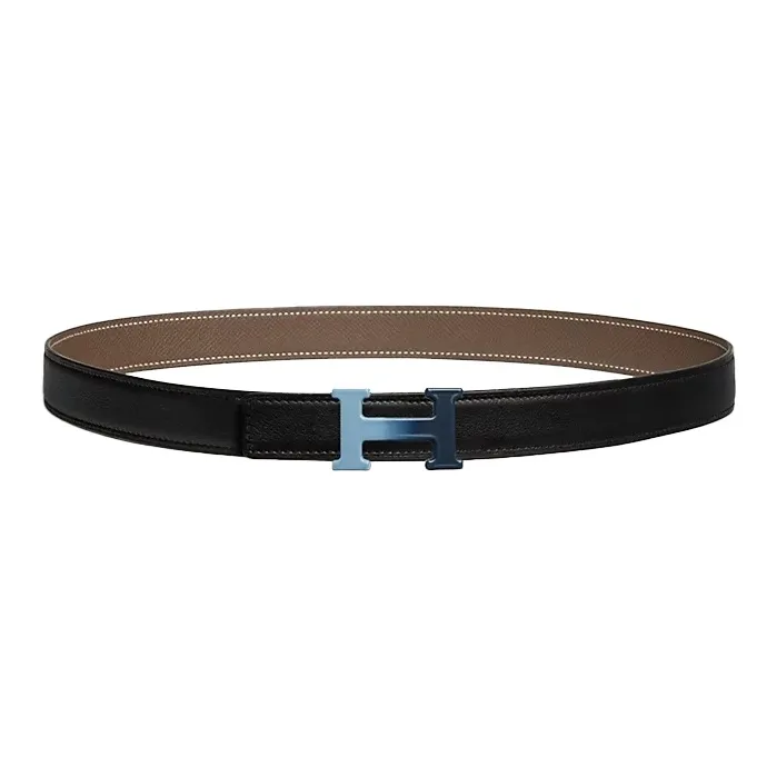 HERMES Двойная сторона коровья кожа сплав эмаль плавная застежка ремень мужской черный слоновая серый ширина 2,4 см