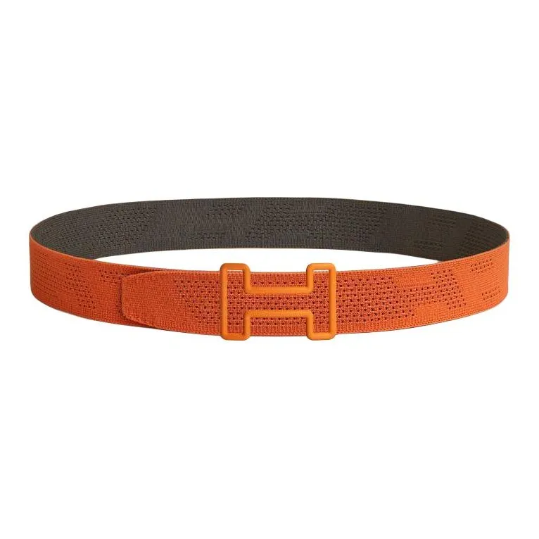 HERMES Двойной на обеих сторонах Tonight плавный замок ремень мужской оранжевый коричневый ширина 3,8 см