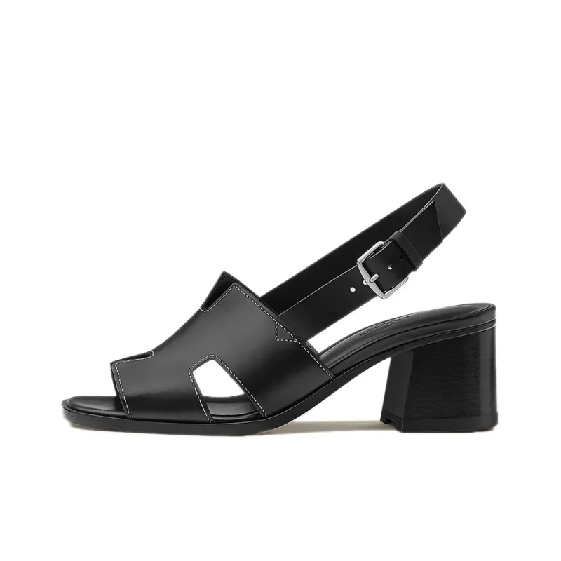 HERMES Elbe One Ремешок Сандалии Женские Черные