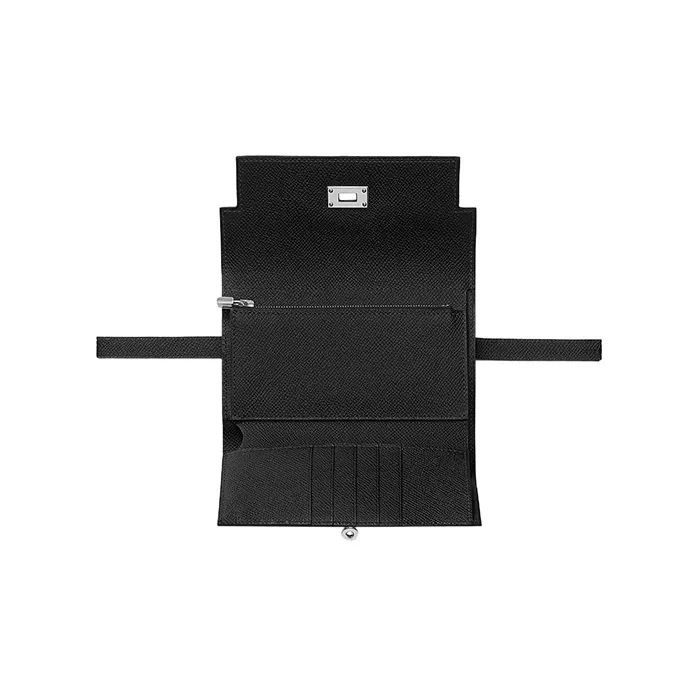 HERMES Epsom Телячья кожа Кошелек Средний Унисекс Черный