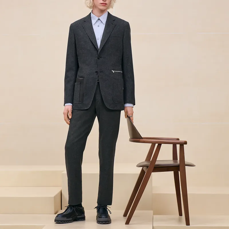 HERMES FW24 Бизнес-костюм Пальто Мужской Антрацит