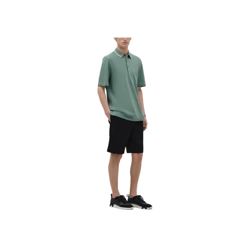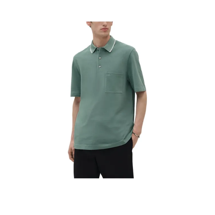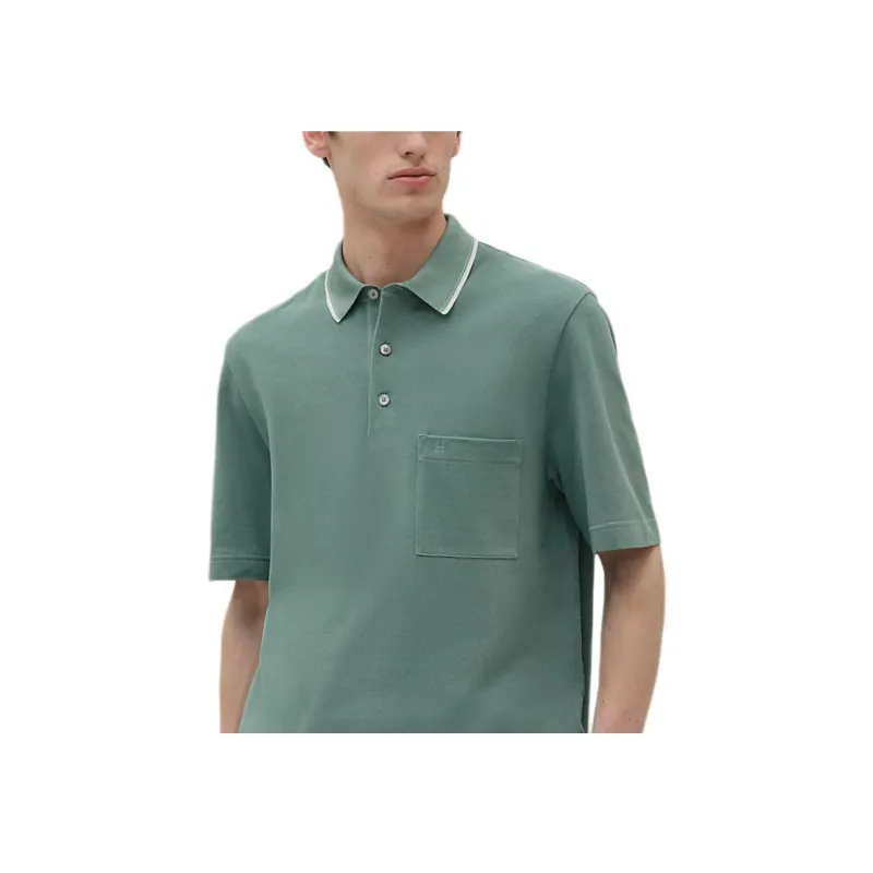 HERMES FW25 Поло Мужское Цвет Селадон Синий