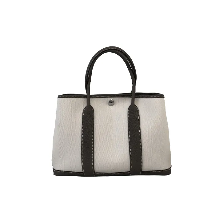 HERMES Garden Party Холст с кожей Сад Сумка Холст Сумка Унисекс Сумка Серый Белый