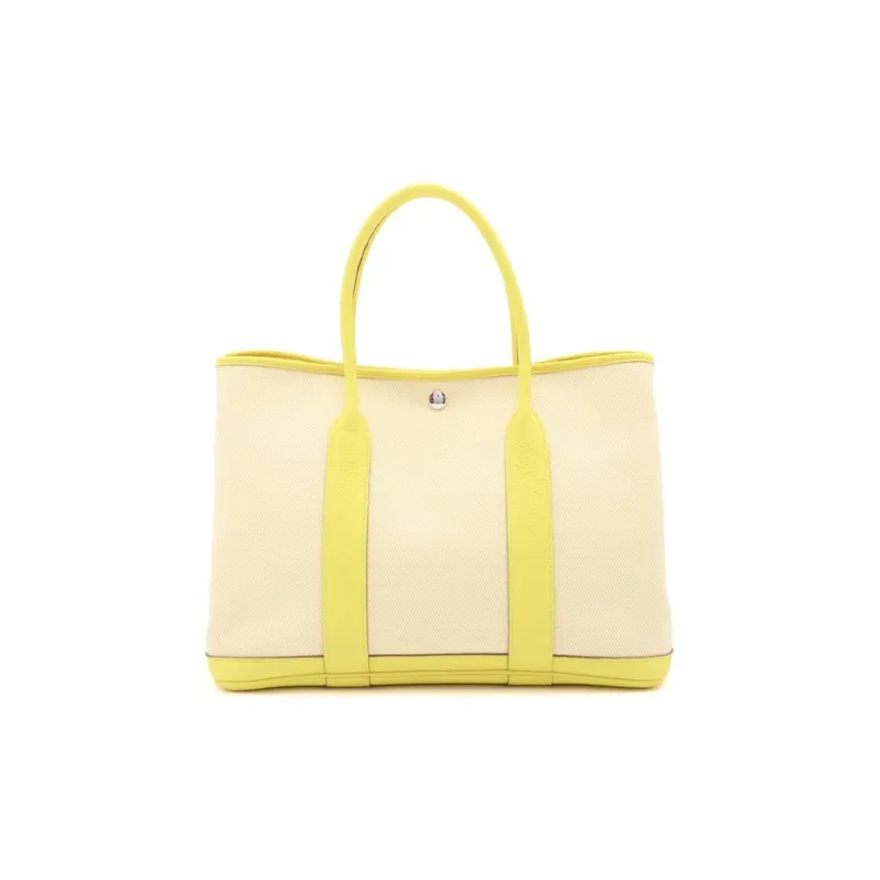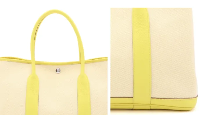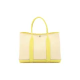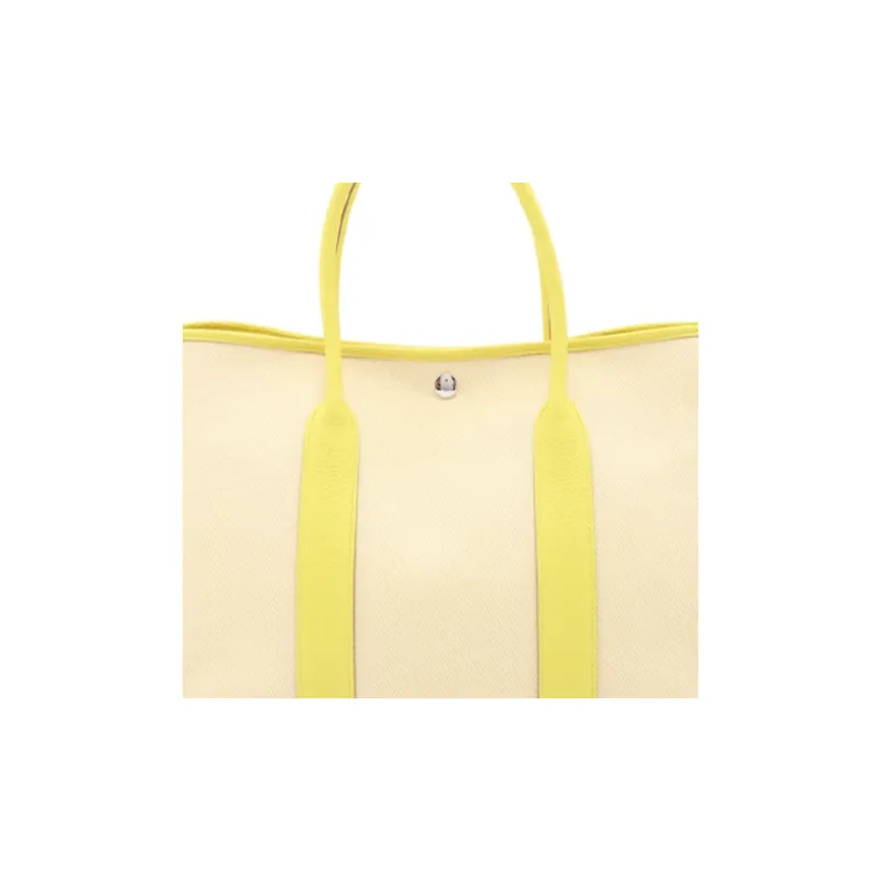 HERMES Garden Party Корова Кожа Холст Сад Сумка Плечо Сумка Сумка Женская Бежевый Желтый