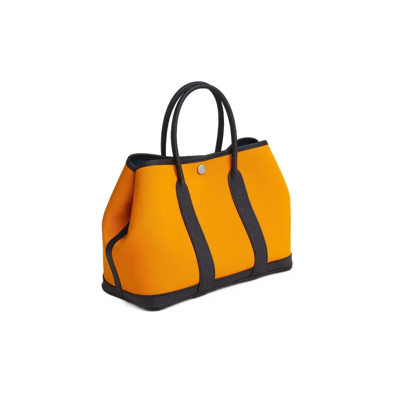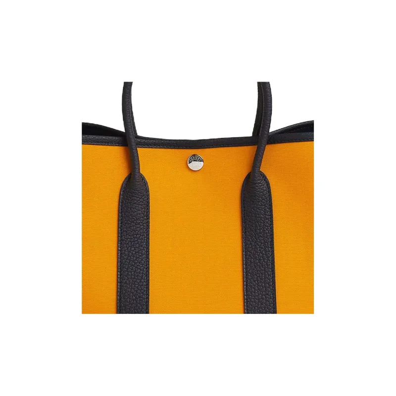HERMES Garden Party Officier Canvas с Negonda Телячья кожа Сад Сумка Холщовая сумка Унисекс Золотая Бирюзовая