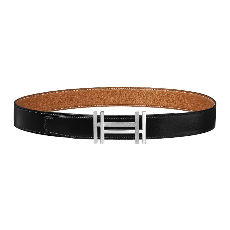 HERMES H au Carre Ремни из коровьей кожи, черные, мужские