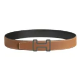 HERMES H Tonight Двойная сторона плавная застежка кожаные ремни мужской коричневый черный ширина 3,8 см