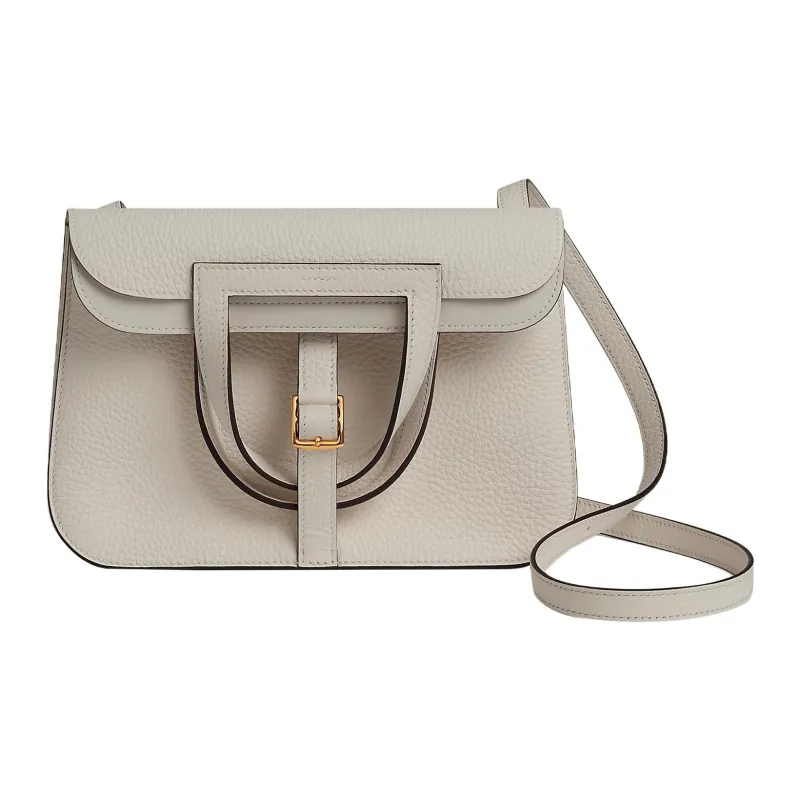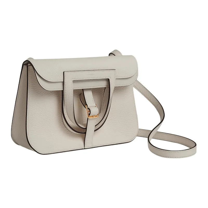 HERMES Halzan Clemence Bullock Кожа Сумка через плечо Сумка Женская 8L Beton Ледниковый Белый