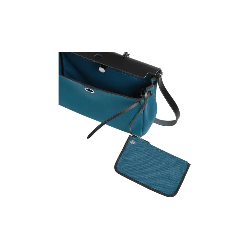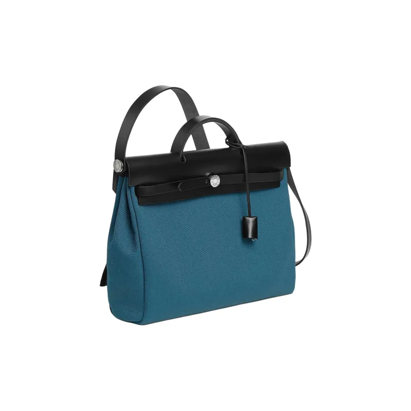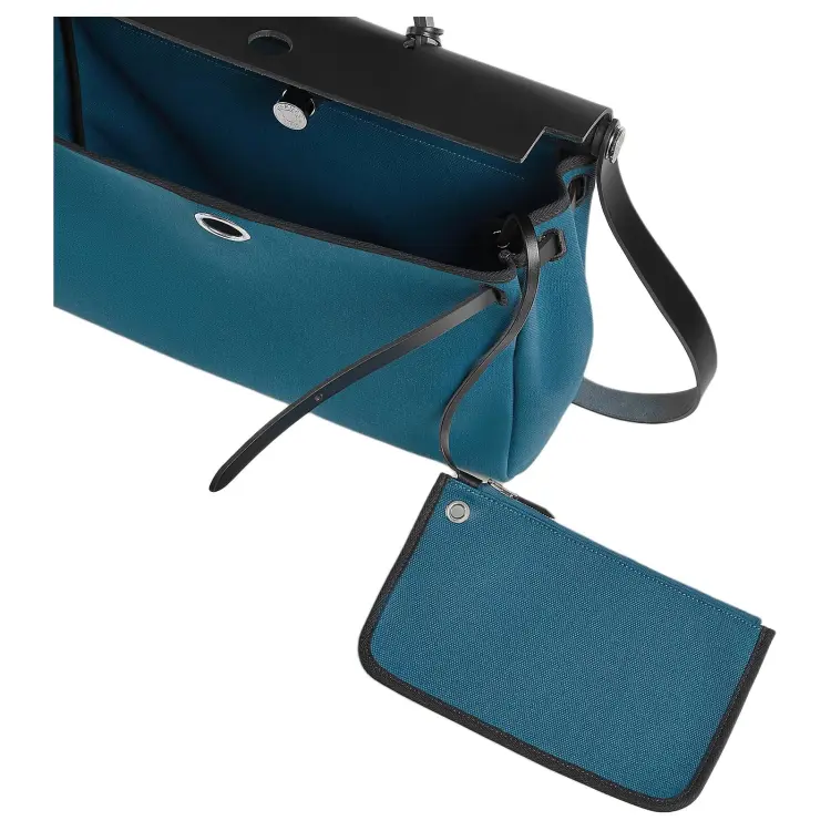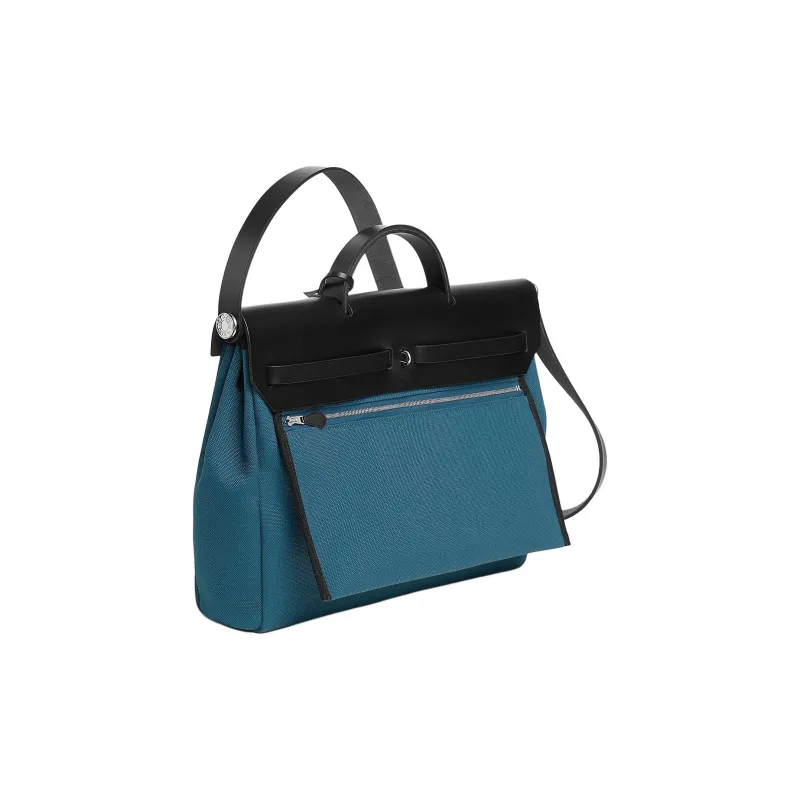 HERMES Herbag Messenger Militaire Холст с Hunter Коровья кожа Одно плечо Сумка Женские Blue Ocean Черный