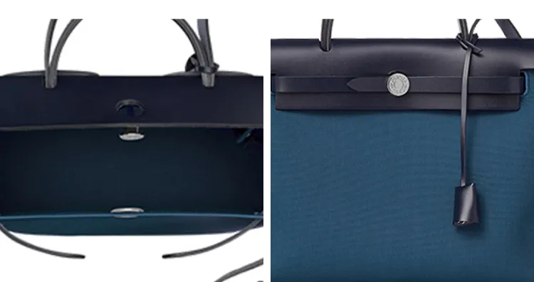 HERMES Herbag Zip Холст и Кожа Сумка Унисекс Черный Темно-синий