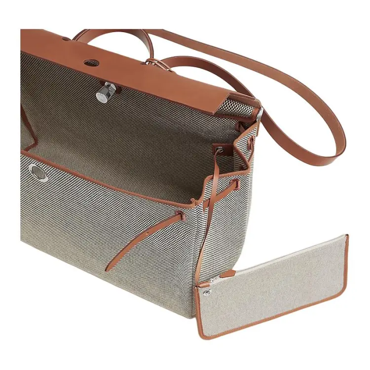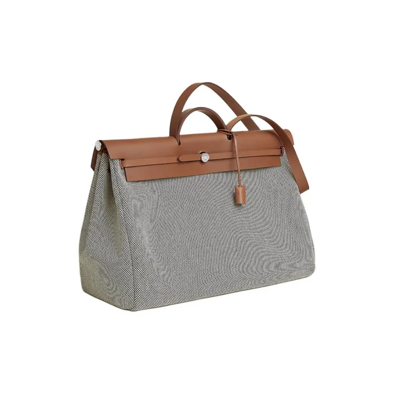 HERMES Herbag Zip Холст и Кожа Сумка Женская Серый и Коричневый