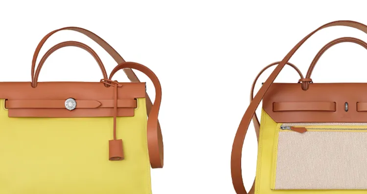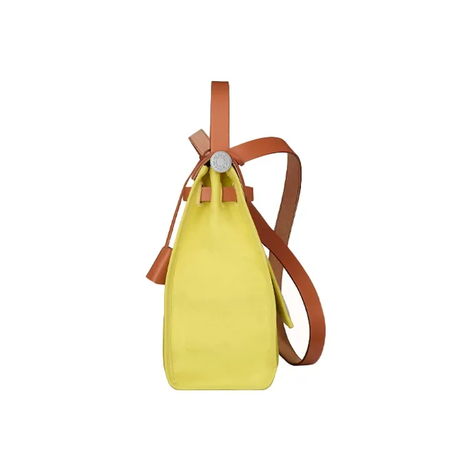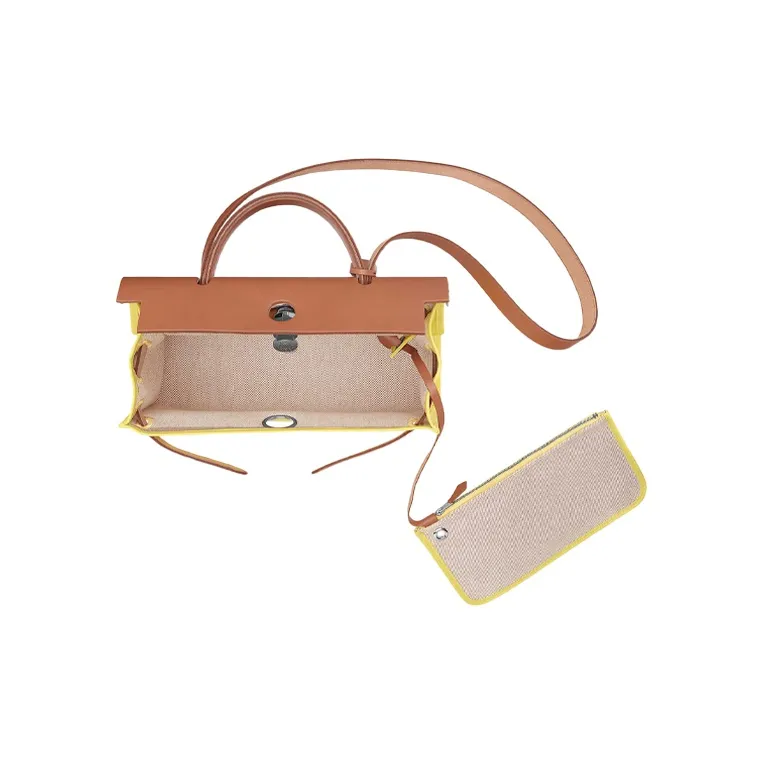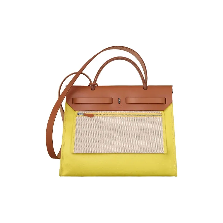 HERMES Herbag Zip Коровья кожа And Холст Сумка из холста Сумка через плечо Сумка через плечо Женская Желтая