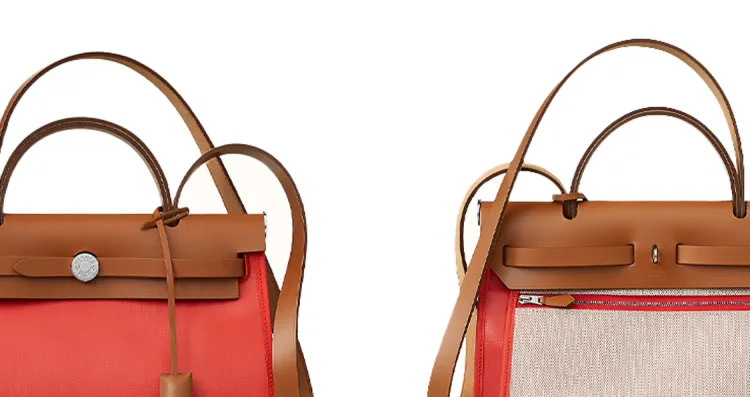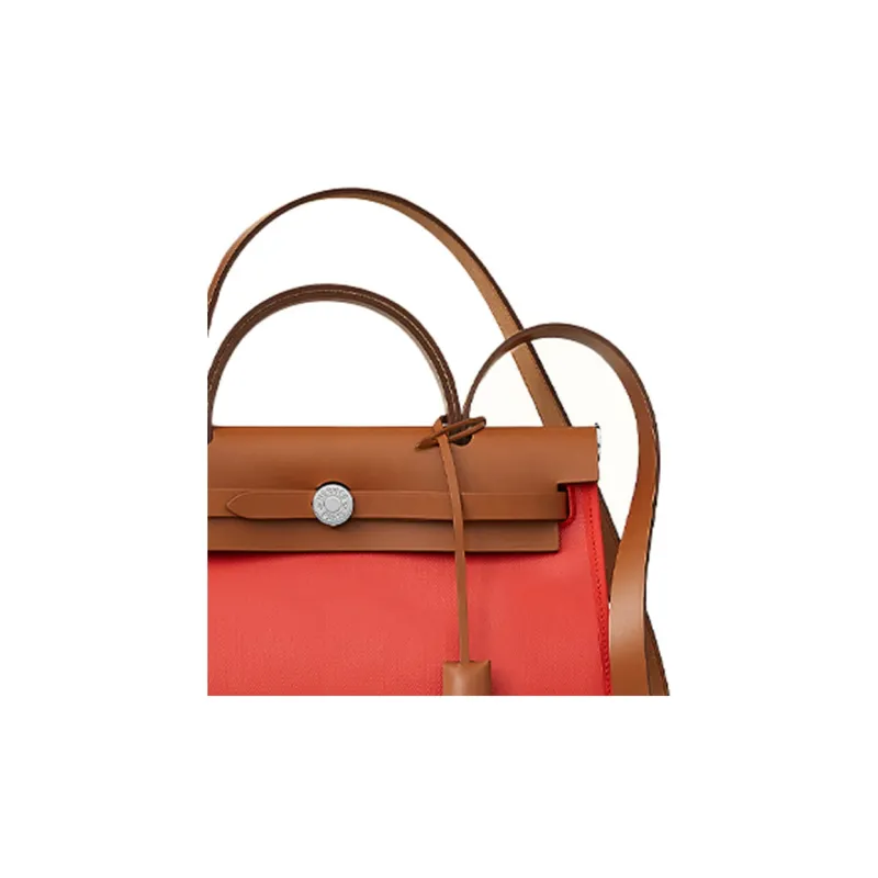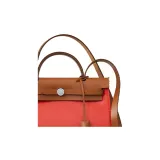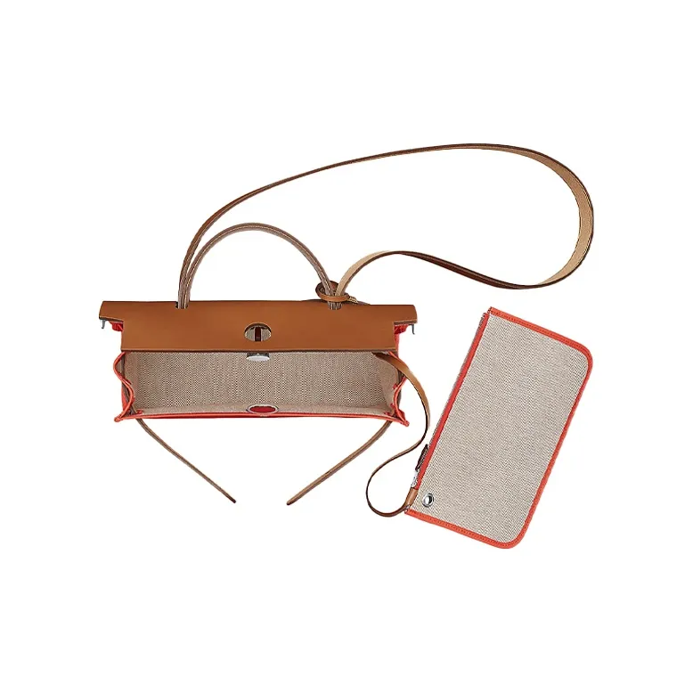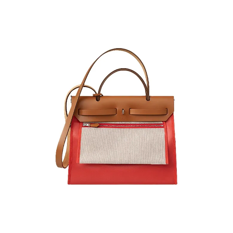 HERMES Herbag Zip Воловья кожа Пэчворк Холст Сумка через плечо Сумка через плечо Женская Оранжевый Красный Коричневый