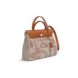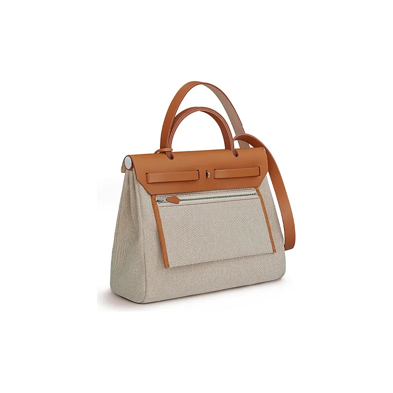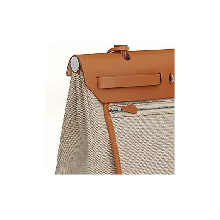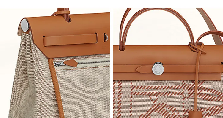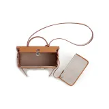 HERMES Herbag Zip Воловья кожа Пэчворк Холст Портативный Холст Сумка через плечо Женская Серый и Коричневый