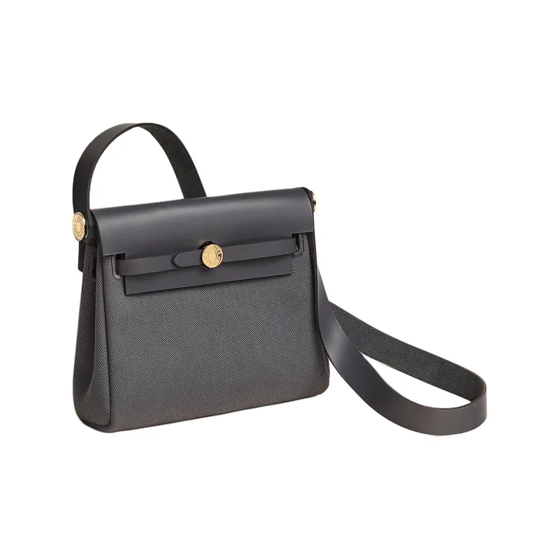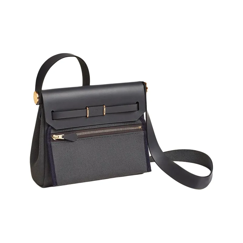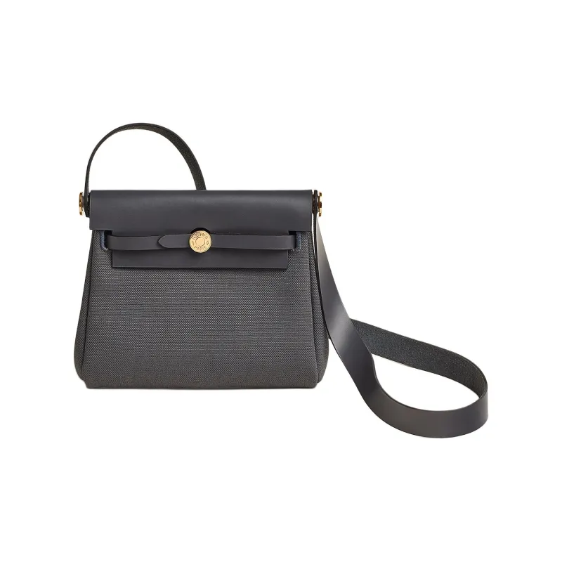 HERMES Herbag Zip Militaire Холст с Hunter Коровья Кожа Сумка через плечо Женская Сланец