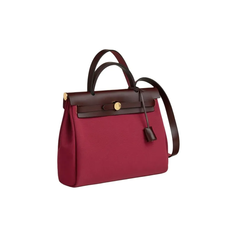 HERMES Herbag Zip Officier Canvas Сумка Женская RUBY RED