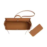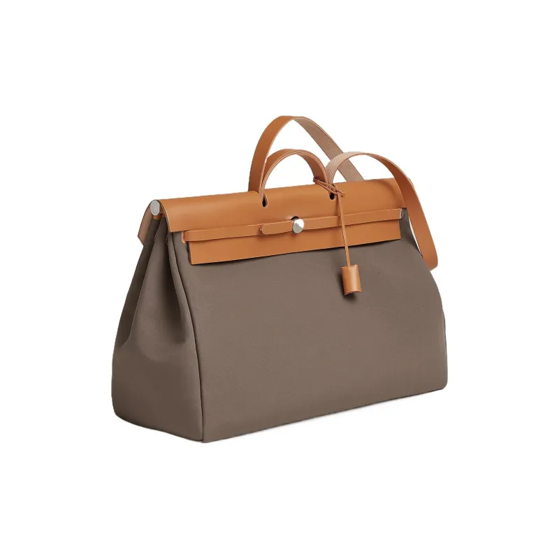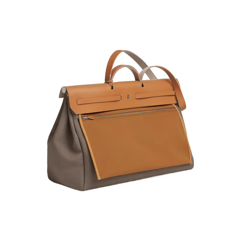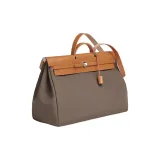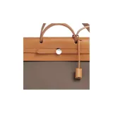 HERMES Herbag Zip Officier Canvas с Hunter Коровья кожа Сумка Унисекс Слоновой серый Эбеновый