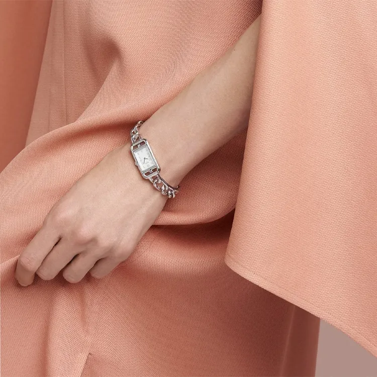 HERMES Heure H Наручные часы Кварцевый механизм Ремешок из нержавеющей стали 23 мм Белый циферблат Женские часы