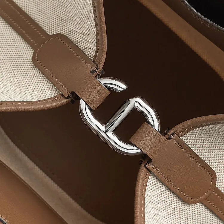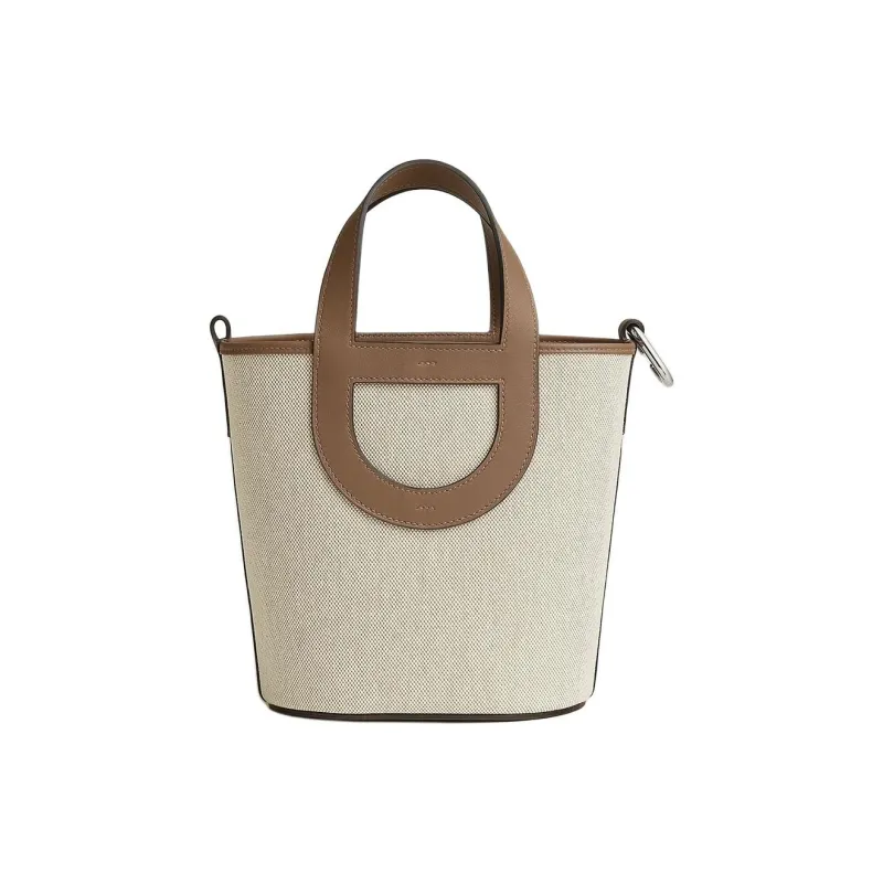 HERMES In The Loop Холст Swift Телячья кожа Корзинка-сумка Свиной нос Сумка-ведро Сумка Женская Коричневый Бежевый