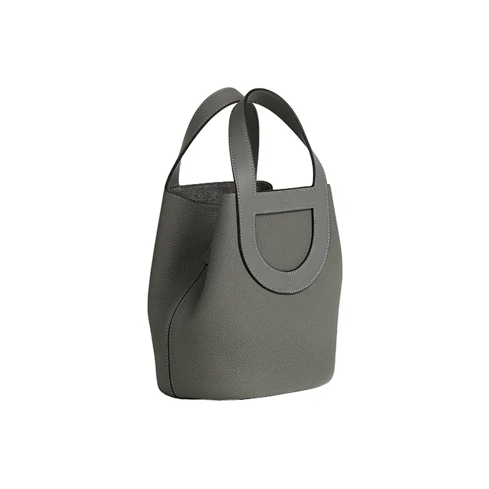 HERMES In The Loop Taurillon Clemence Bullhide с Swift кожа ведрообразная сумка женская дождевой облачный серый цвет
