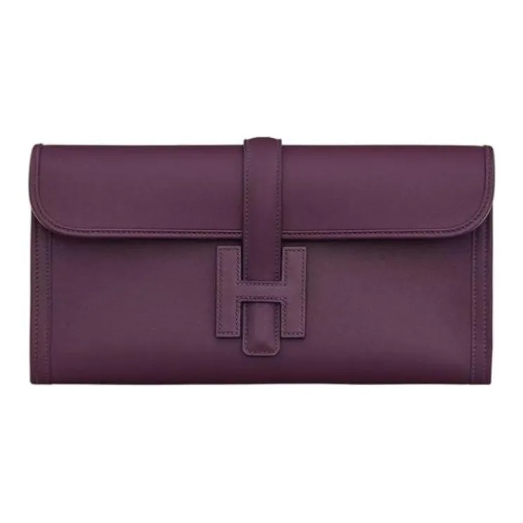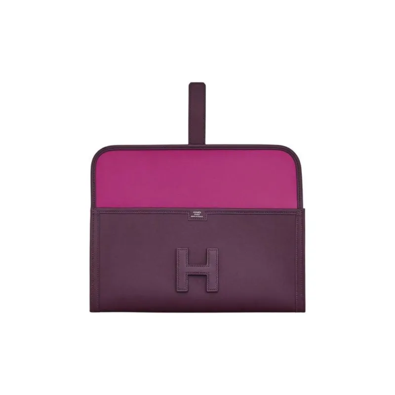 HERMES Jige Elan Swift Телячья кожа Клатч Женские Темно-фиолетовый и Фуксия