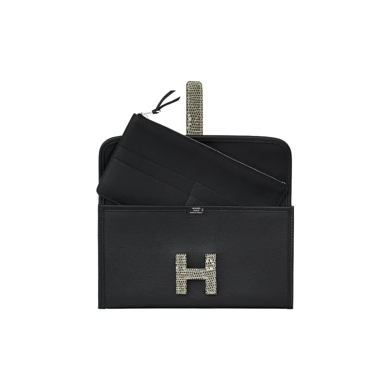 HERMES Jige Swift Телячья кожа Монета Кошелек Кошелек Женские Черный