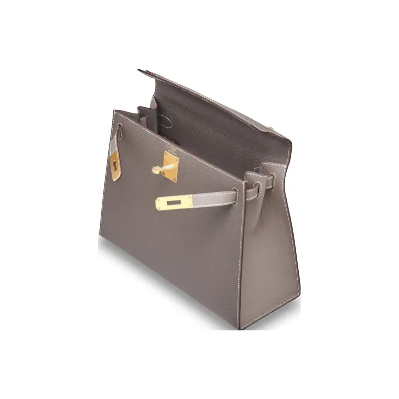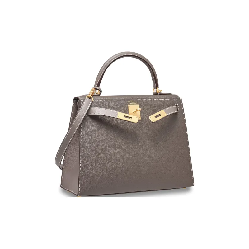 HERMES Kelly Эпсомская кожа Сумка Kelly Сумка через плечо Обычная Женская 8F Gris Etain Оловянно-серый