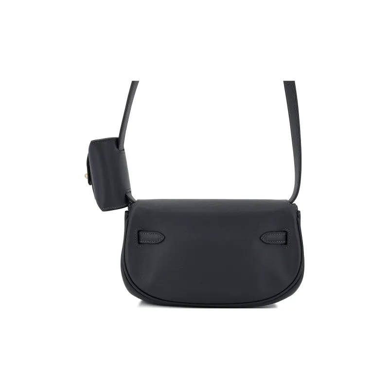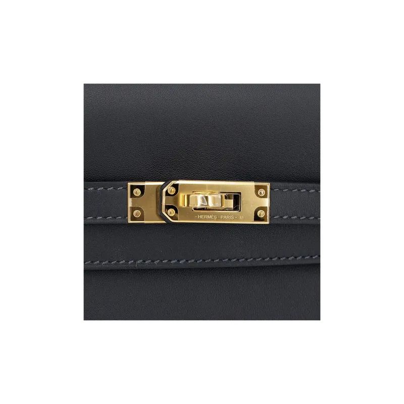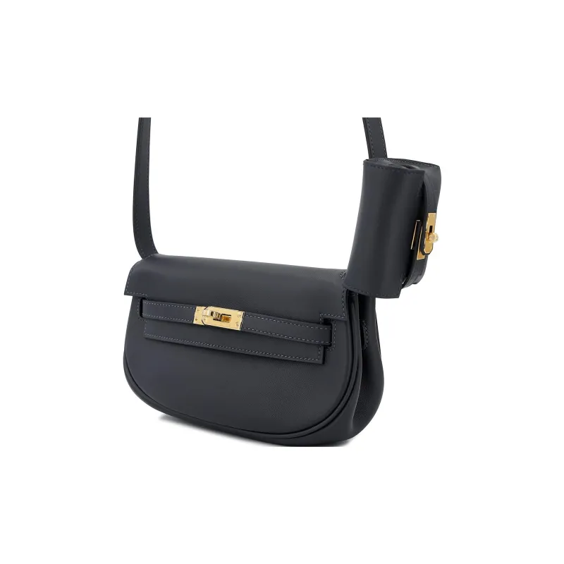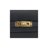 HERMES Kelly Swift Кожа Сумка Kelly Сумки через плечо Сумка на плечо Женская 3Y Caban Черный Твид и Темно-синий Синий