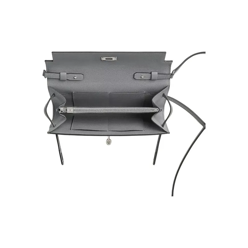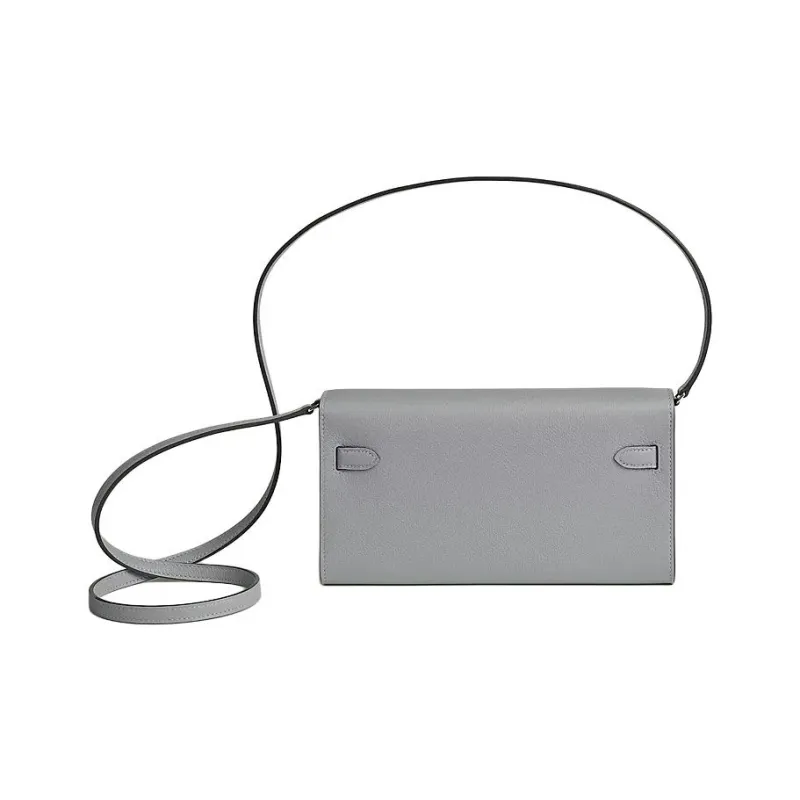 HERMES Kelly To Go Evercolor Телячья кожа Сумка через плечо Кошелек Женский Серый