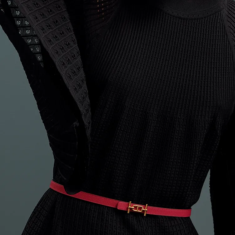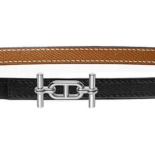 HERMES Letter Logo Smooth Clasp Кожаные ремни Женские Черный Коричневый Ширина 1,3 см