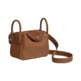 HERMES Lindy BARENIA Faubourg Телячья кожа Сумка Мини Женская Золотисто-коричневая