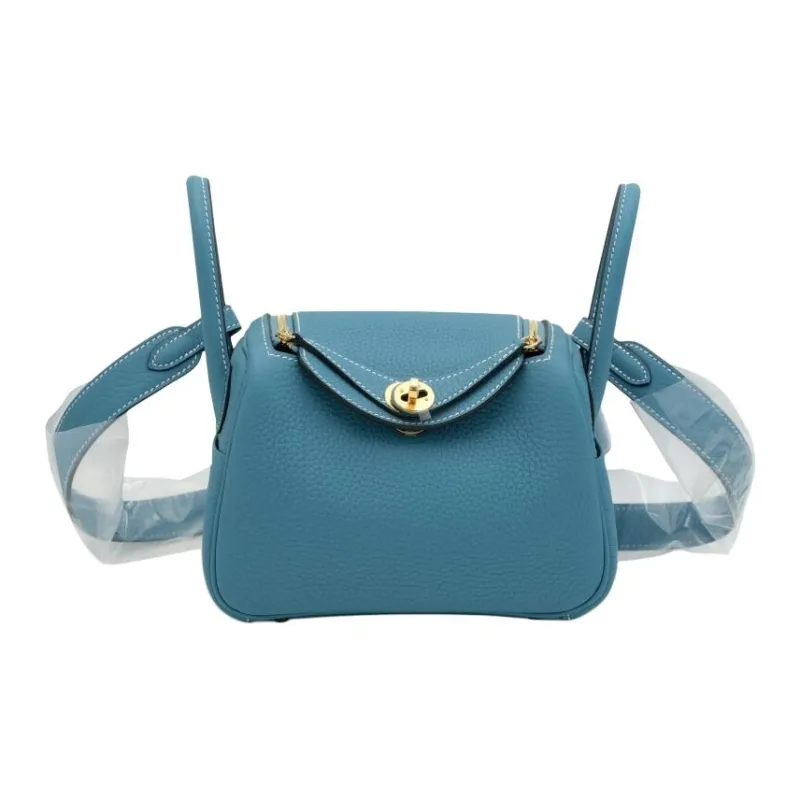 HERMES Lindy Clemence Bullock Кожа Сумка Сумка через плечо Сумка через плечо Мини Женская D2 Новый BLEU JEAN Новый Джинсовый синий