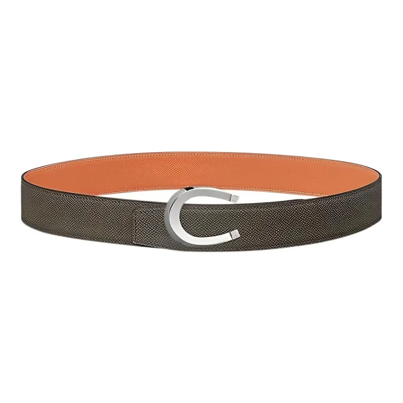 HERMES Удача Коровья кожа Ремень Мужской Оловянно-серый Ширина 3,8 см