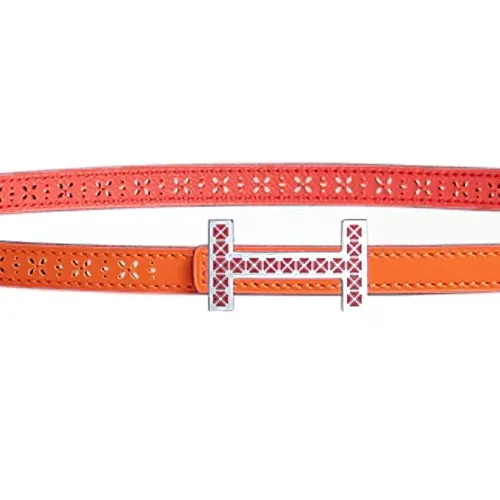 HERMES Medor Swift And Перфорированный Epsom Телячья кожа Кожаные ремни Женские Апельсин Jaipur Розовый Ширина 1,3 см