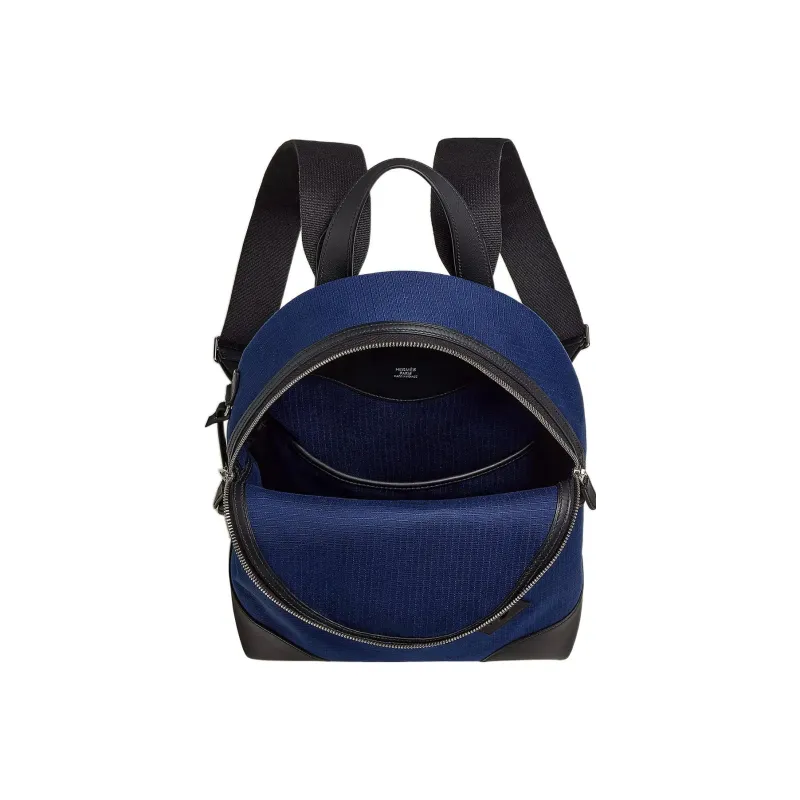 HERMES Nouveau Sac a Dos T C Bivouac Холст с Swift Кожа Рюкзак Мужской Сапфирово-синий Черный