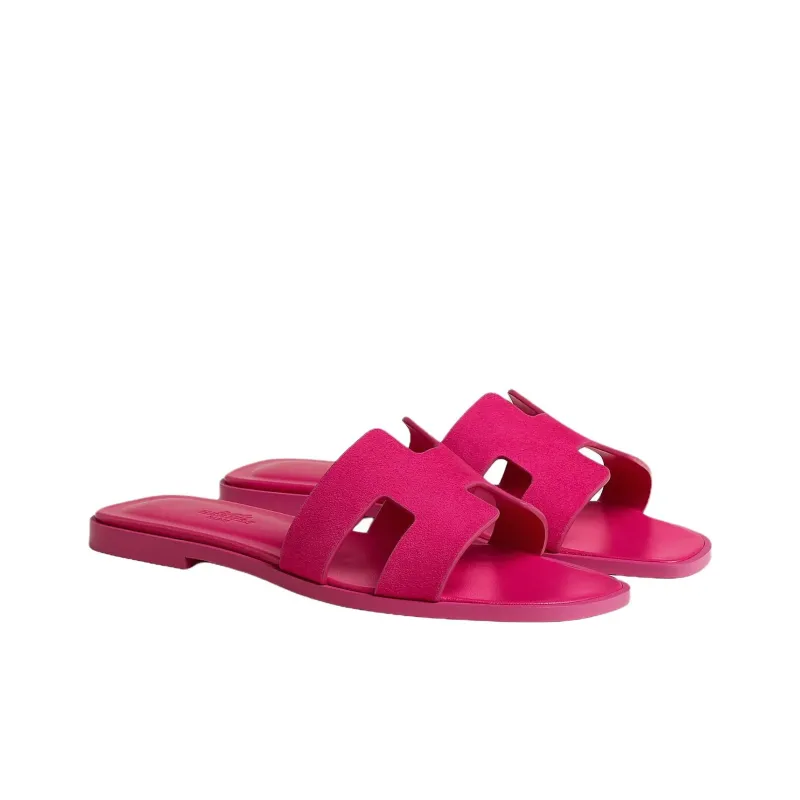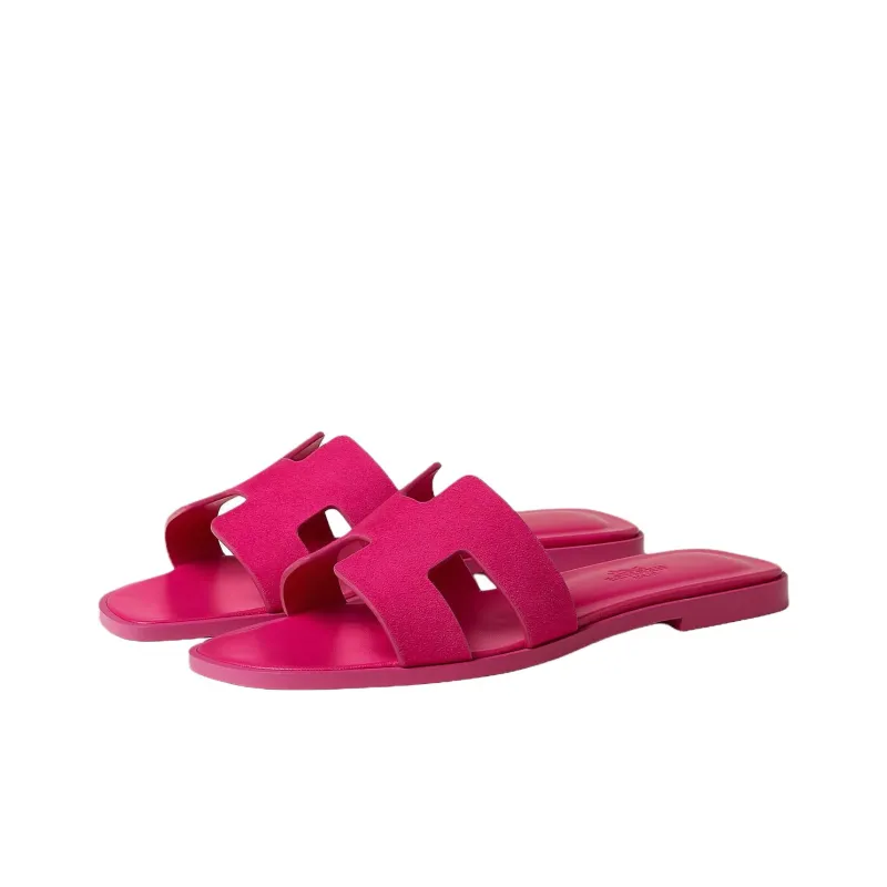 HERMES Oran Шлепанцы Женские Розово-красные