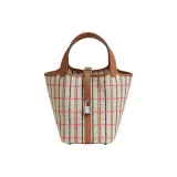 HERMES Picotin Lock Телячья кожа с холщовой сумкой корзина сумка женская бежевый и многоцветный